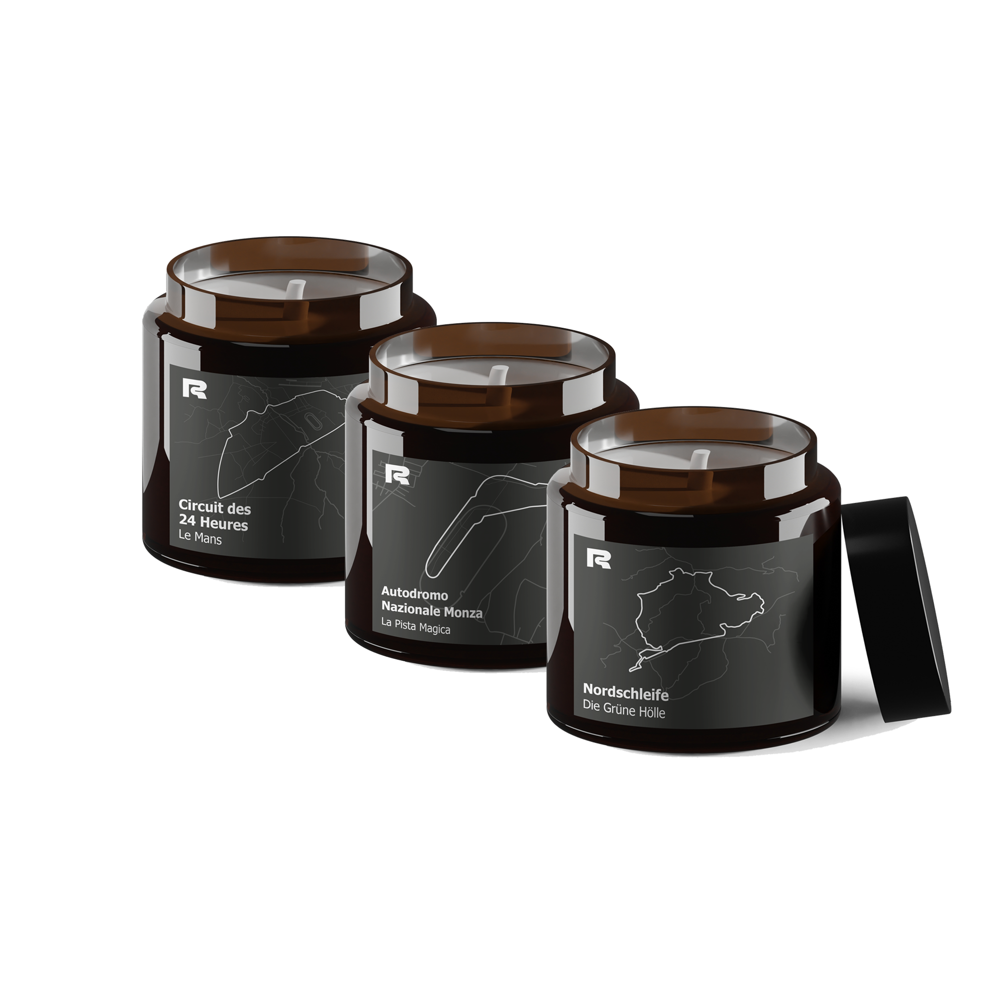 Nein. Wir fangen die Atmosphäre ein, nicht die Abgase. Jede Kerze im Set hat einen eigenen Charakter: Le Mans ist warm und ledrig, Nürburgring riecht frisch nach Wald und Monza lebendig nach Kräutern/Zitrone. Alle drei sind absolut wohnzimmertauglich.